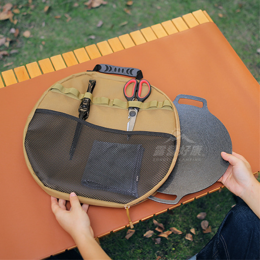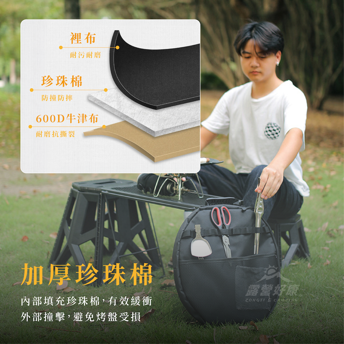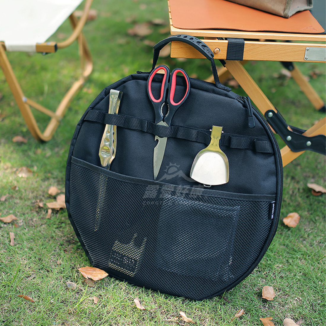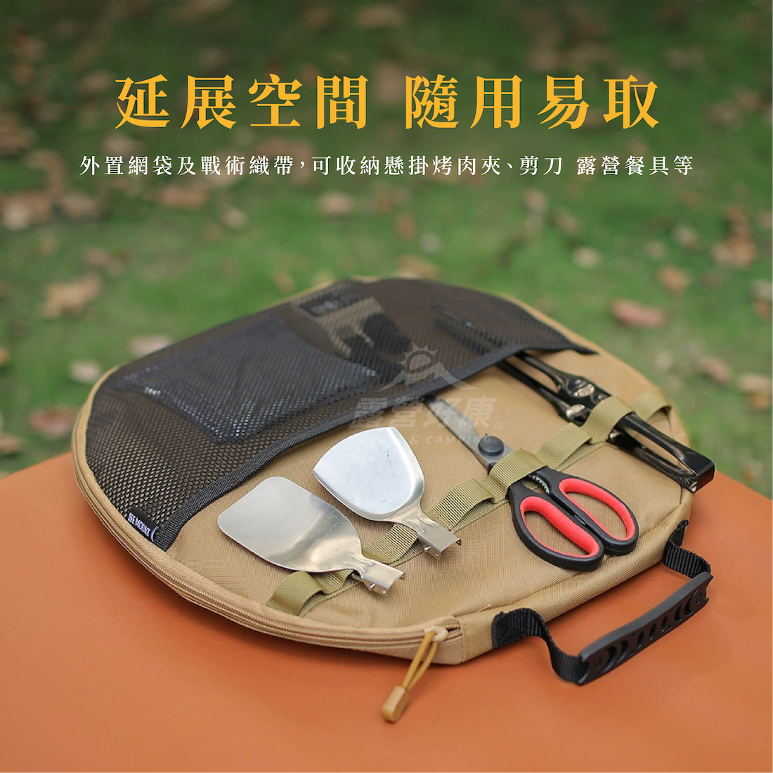 外置網兜及懸掛織帶,可收納懸掛烤肉夾、剪刀 露營餐具等