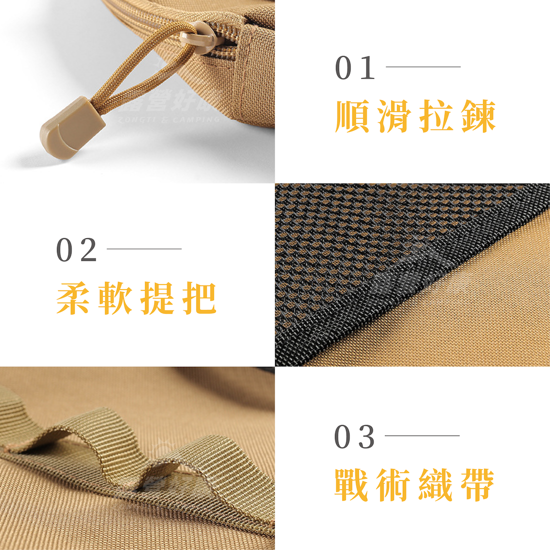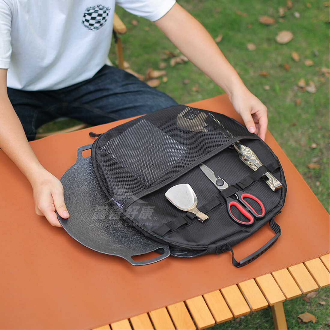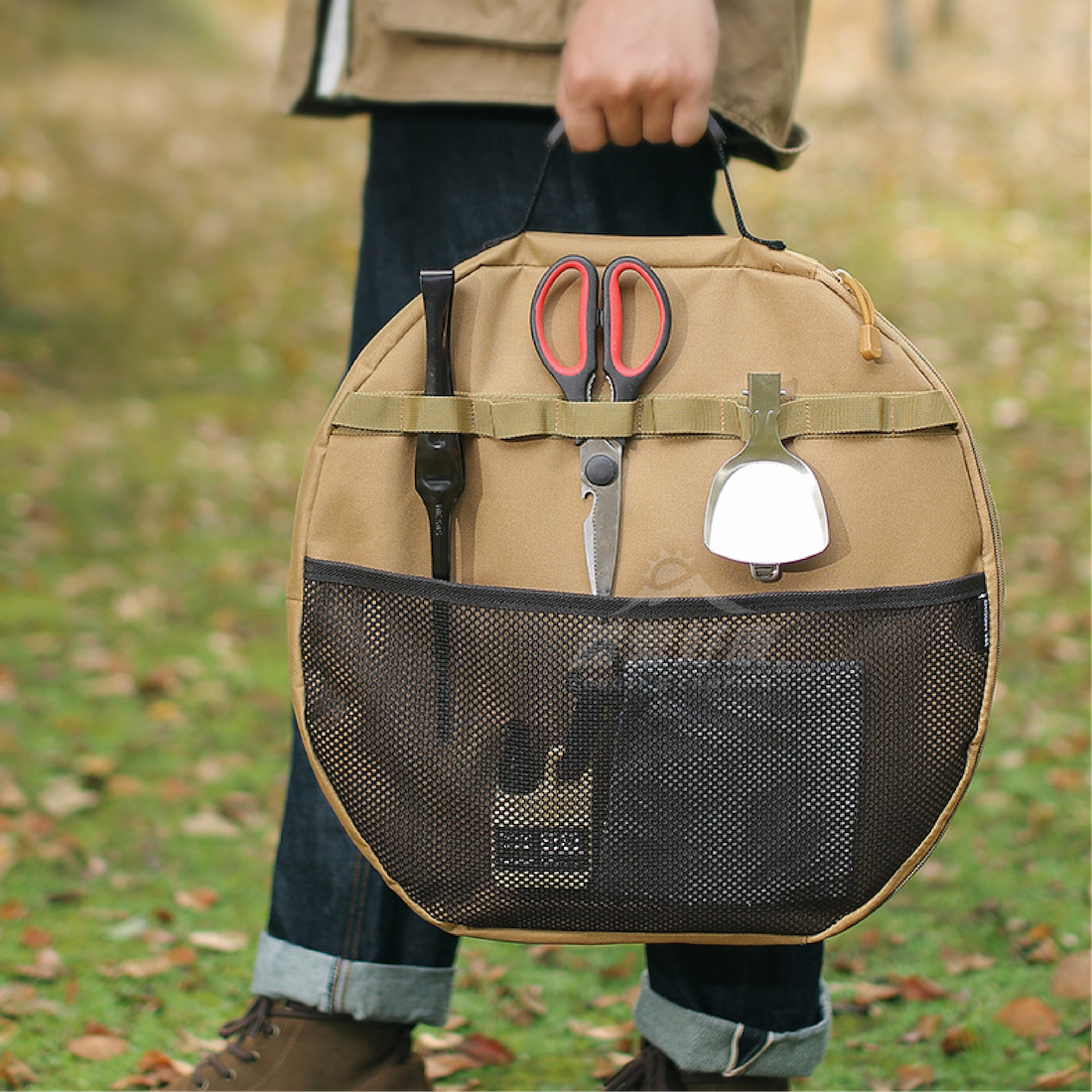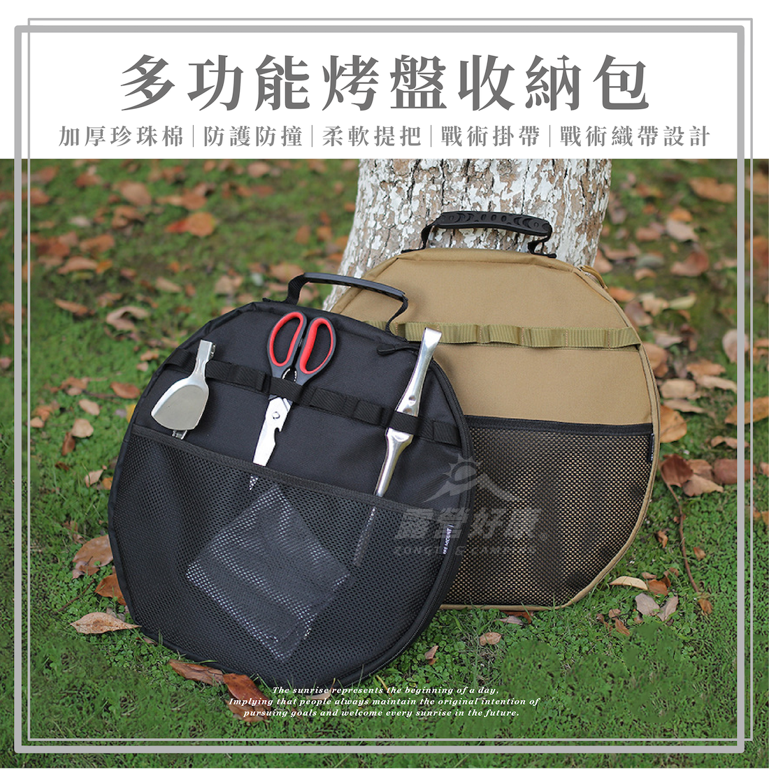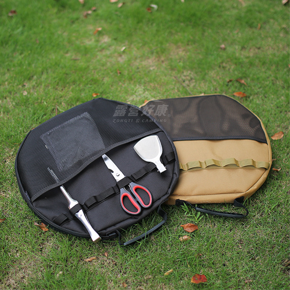 外置網兜及懸掛織帶,可收納懸掛烤肉夾、剪刀 露營餐具等