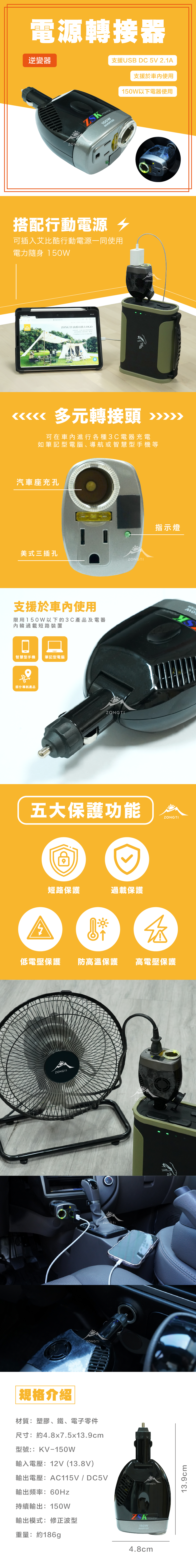 車內專用轉接頭,只要是150W以下的電器大部分都能使用