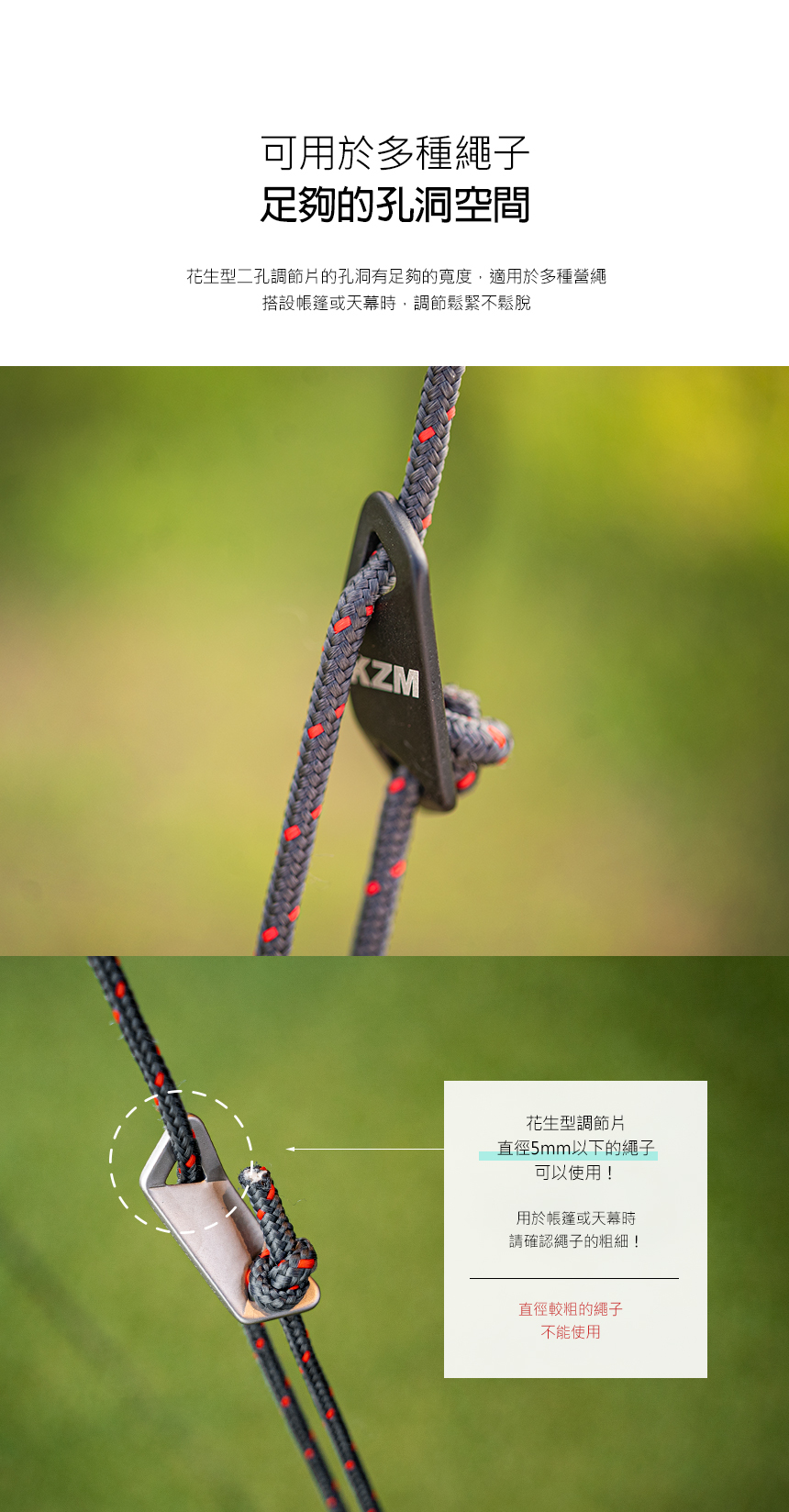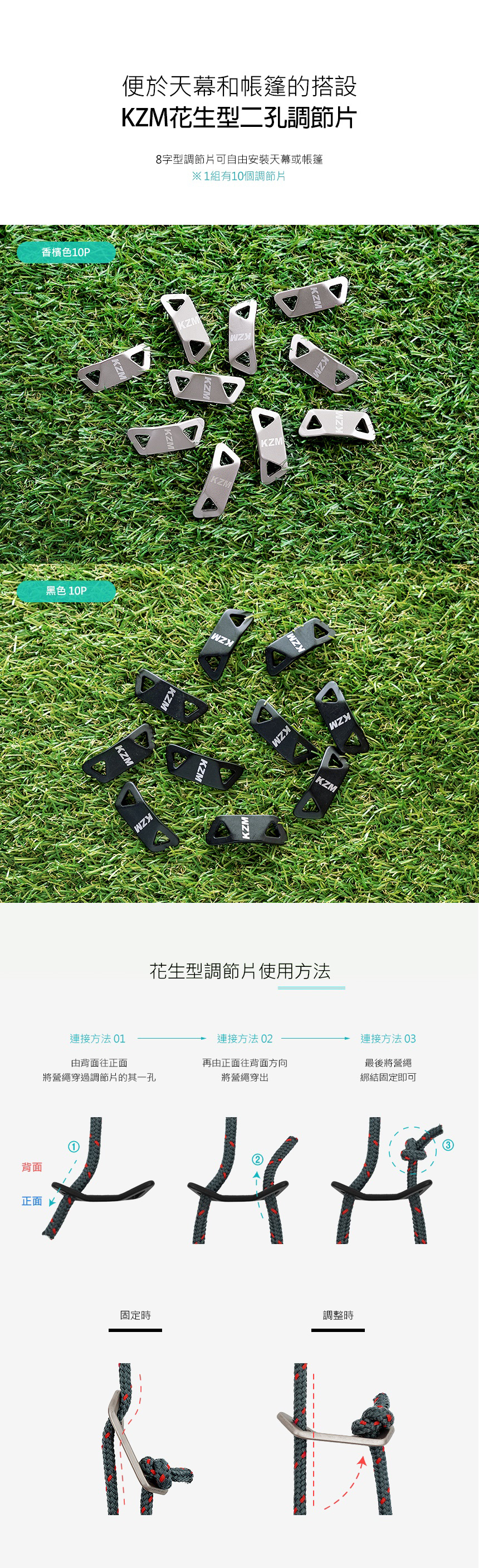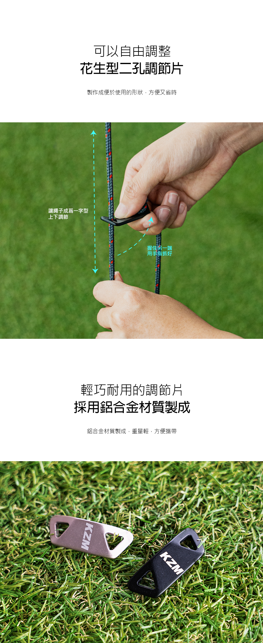 安裝於營繩上調節營繩長短及鬆緊