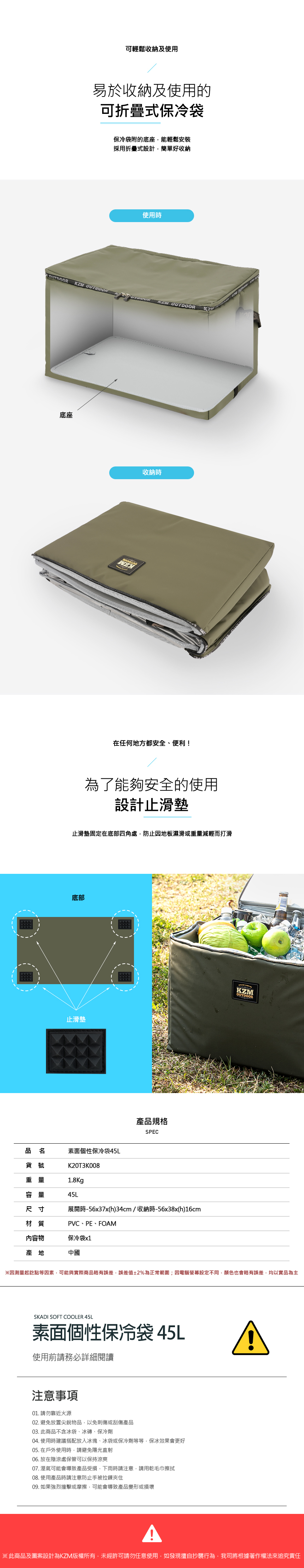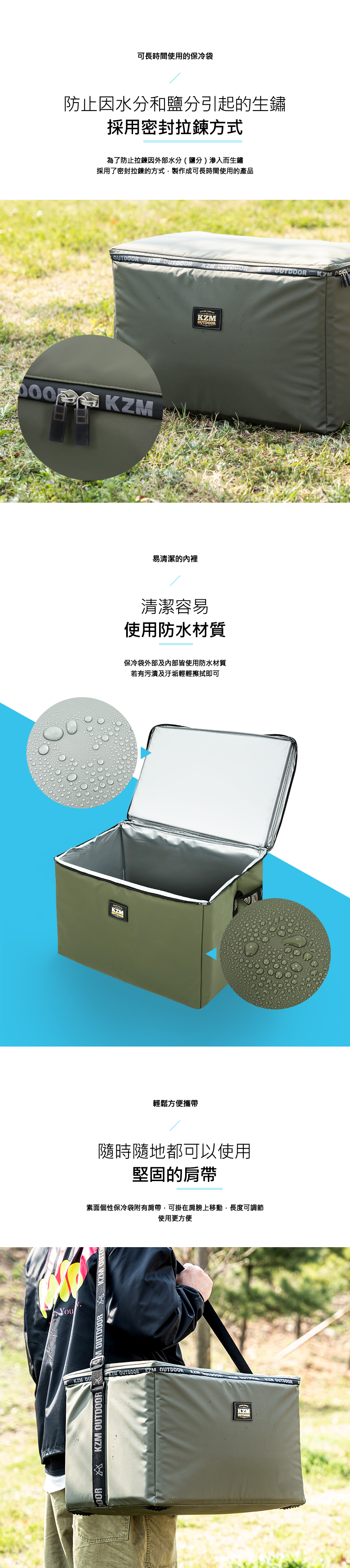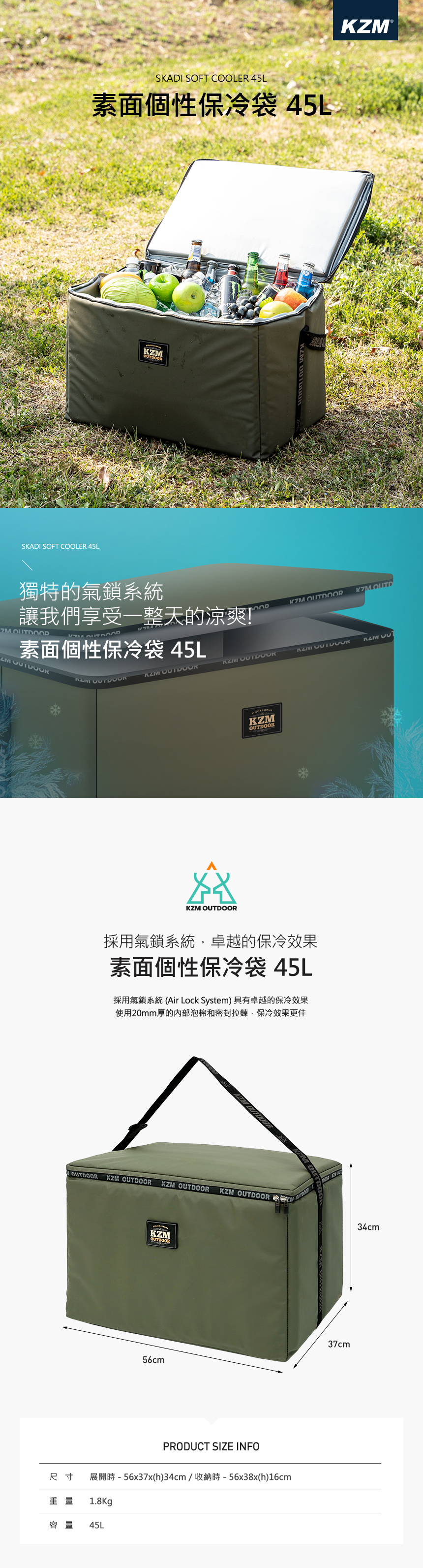 ☑️KZM KAZMI 個性素面保冷袋 45L (軍綠色)