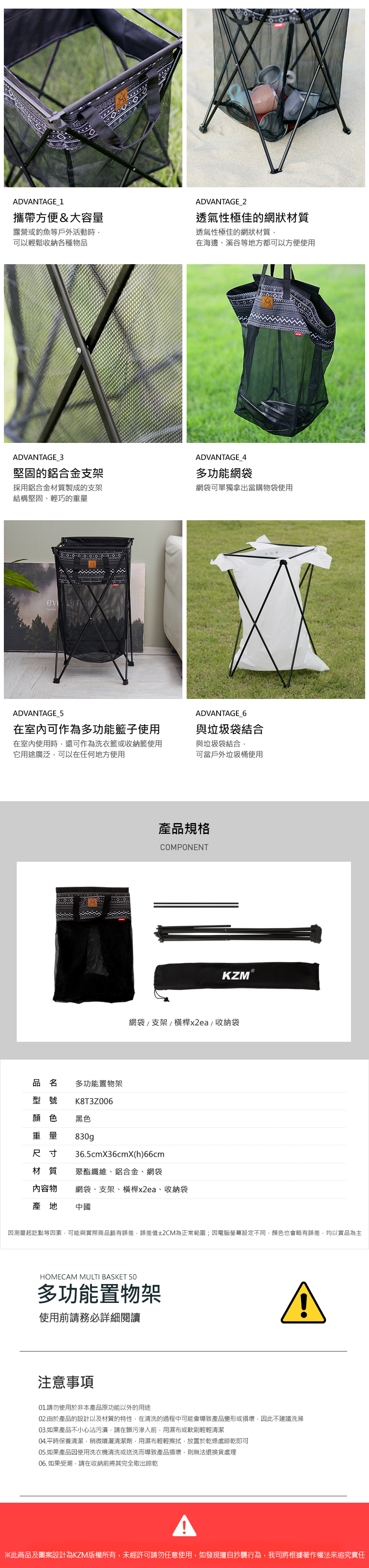 内容物:網袋、支架、橫桿、收納袋