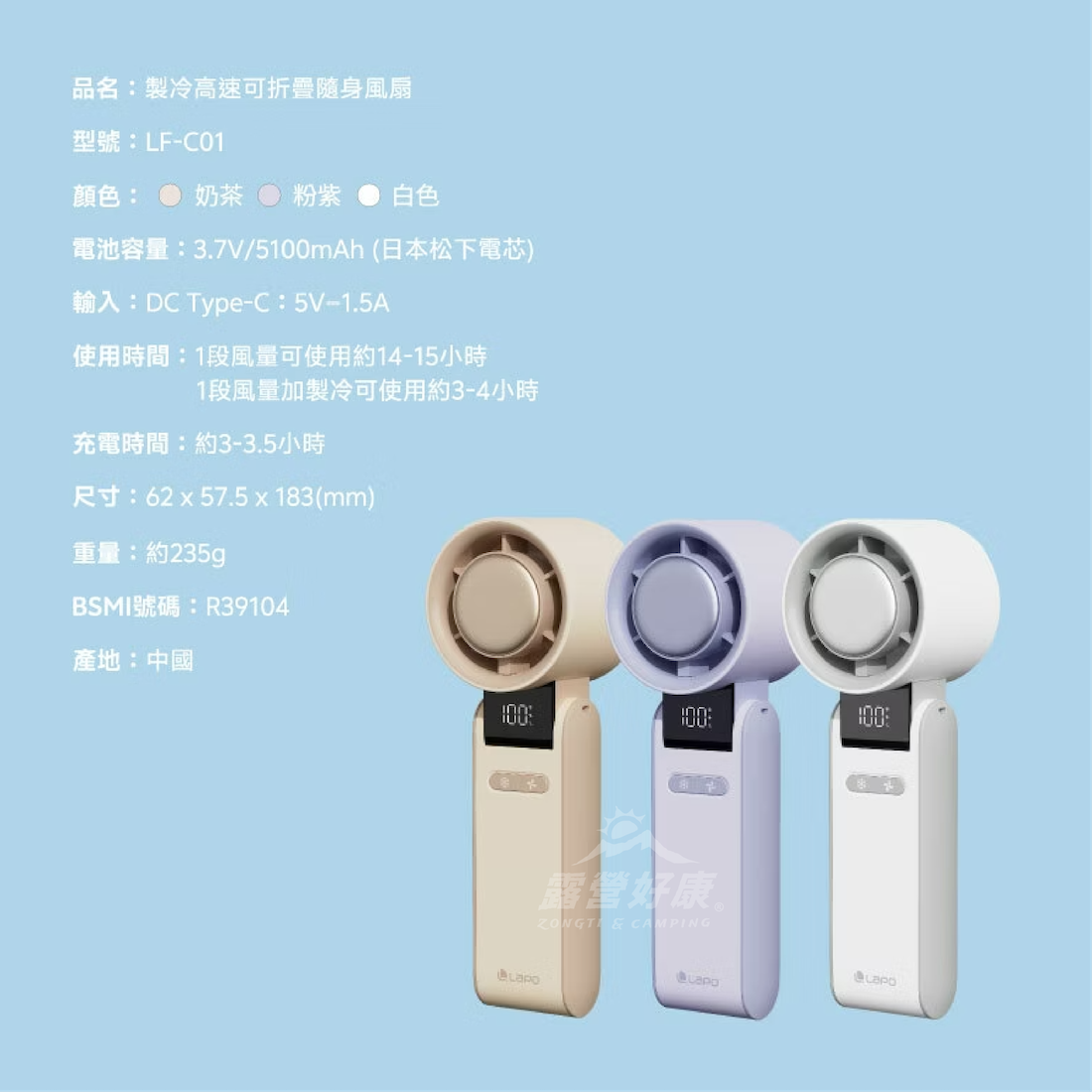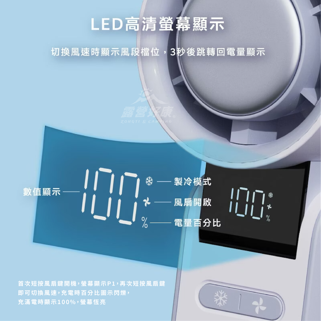 ・LED顯示螢幕,電量/模式/風速顯示一目瞭然