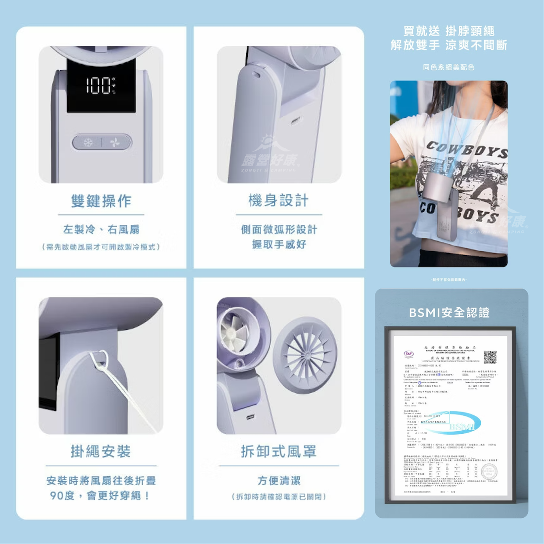 ・可折疊90度,手持、掛頸、桌面用多功能