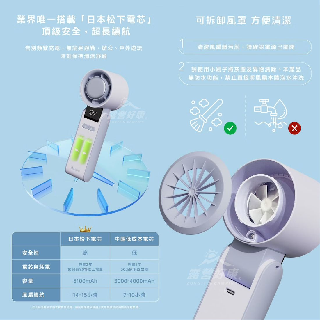 ・業界唯一使用日本松下高品質電芯,5100mAh大電量,超長續航