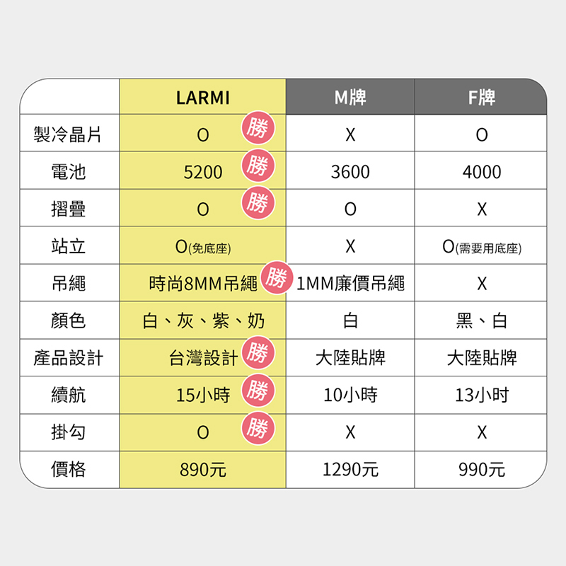 ✓ 5200mAh 超長續航|最高 13H 持久涼感