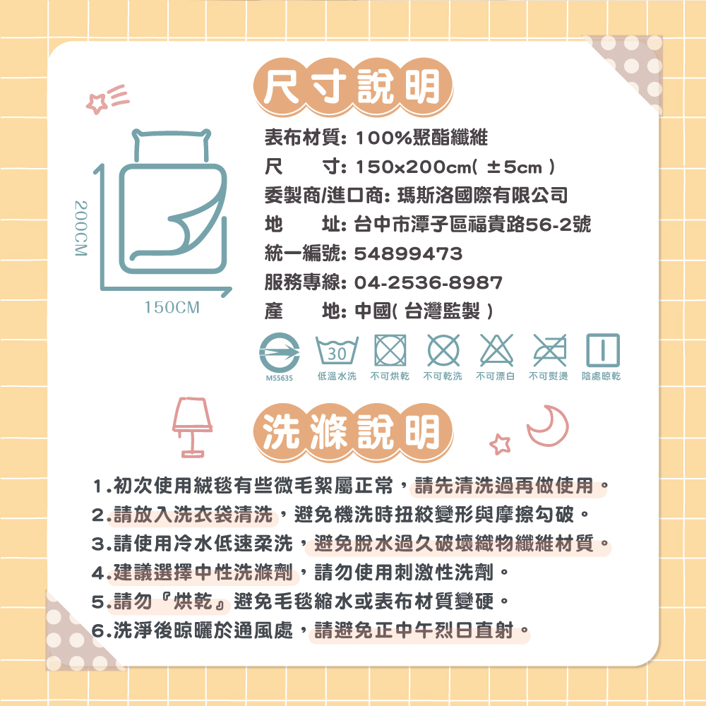 • 尺寸: 150*200cm (正負5cm)