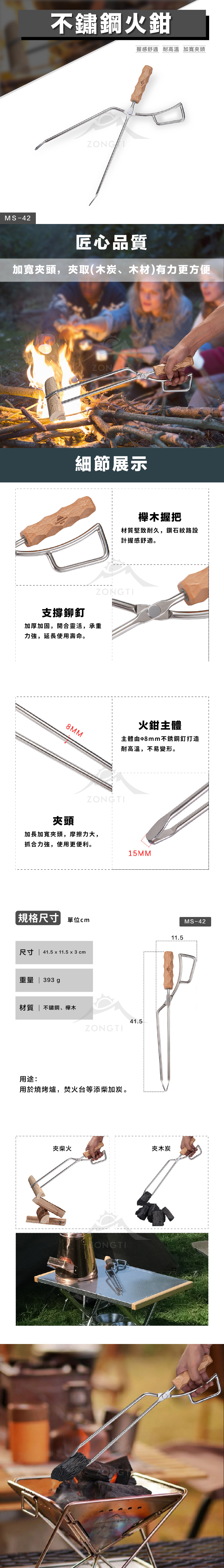✨柯曼 櫸木握柄火鉗✨露營、燒烤時,柯曼的火鉗會是你不可或缺的好夥伴!不只是火鉗,更是每次燒烤、野營活動中的品質保證。特點:🌲 櫸木握把:質感優雅,獨特的鑽石紋路使握感更為舒適。🛠️ 加固設計:從夾頭到鉚釘,每個部分都進行了加厚和加固,確保耐用。🥩 強力夾取:特殊設計的夾頭,使夾取食材和木柴更為方便。🔥 高溫不變形:8mm的不鏽鋼主體,即使在高溫下也能保持形狀,不易變形。🔄 靈活開闔:經過特殊設計的支撐鉚釘,確保開闔靈活,使用起來更加順手。產品規格:品名:柯曼 櫸木握柄火鉗型號:MS-42材質:不鏽鋼、櫸木重量:約393g尺寸:41.5 x 11.5 x 3 cm用途:專為燒烤爐、焚火台等添柴使用,讓你的烹飪體驗更加順利。燒烤、野營時,柯曼火鉗助你添柴如飛,讓你的活動更加順利和有趣!