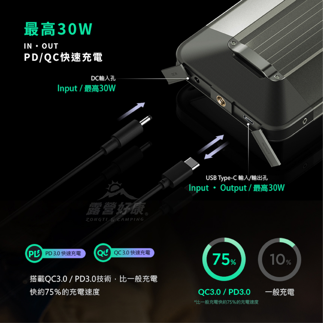 ✔DC輸入孔/USB TYPE-C輸入輸出,最高30W,附有專用DC充電器