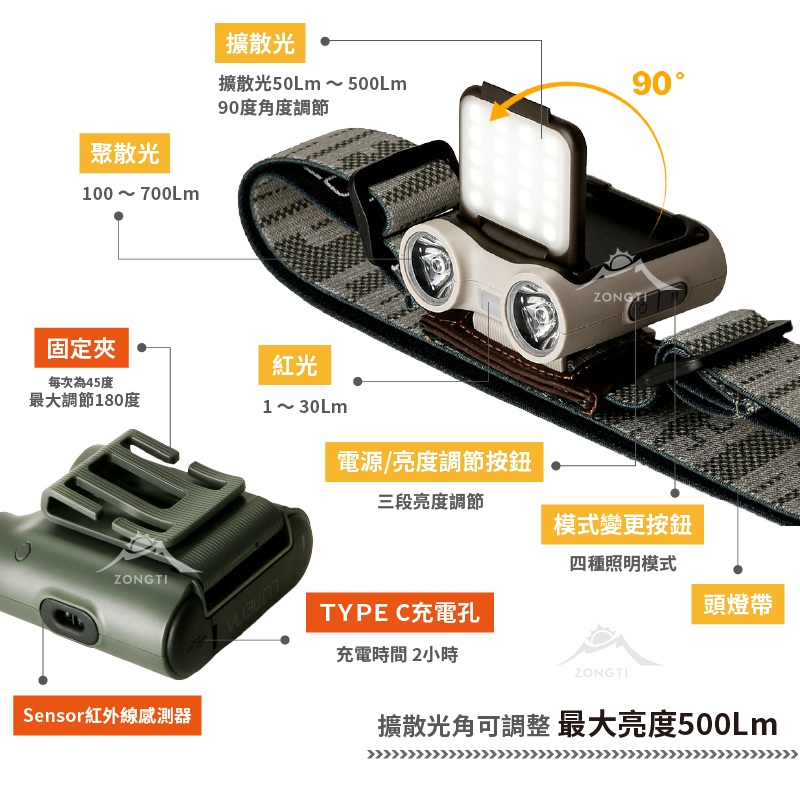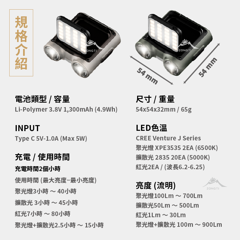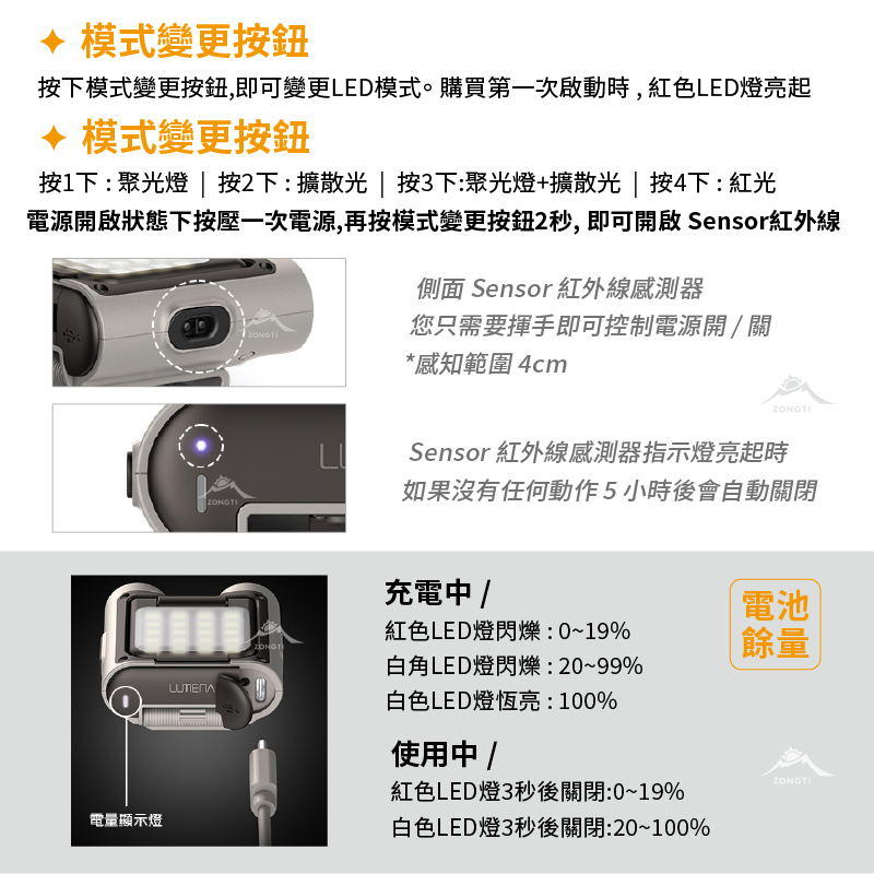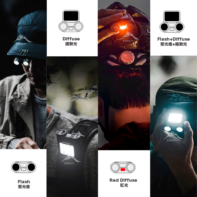 - 四種照模式,紅光/聚光/擴散光/聚光+擴散光
