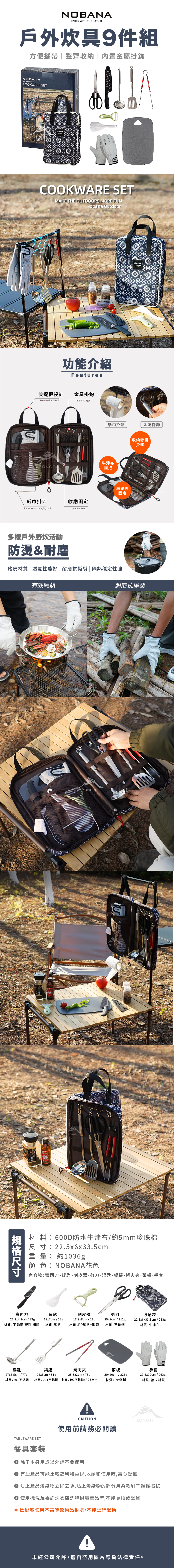 品名:NOBANA 戶外野營廚房料理工具9件組