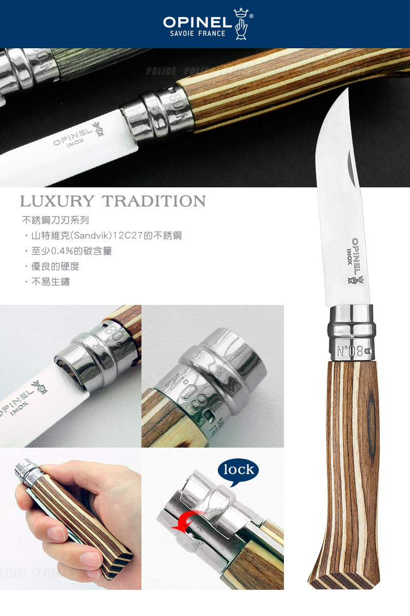 品名:OPINEL No.08 法國刀豪華刀柄系列-樺木刀柄/棕