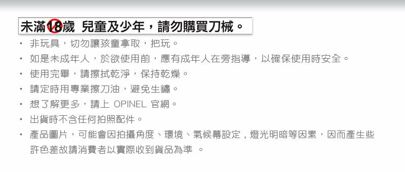 ※未滿18歲 兒童及少年,請勿購買刀械。