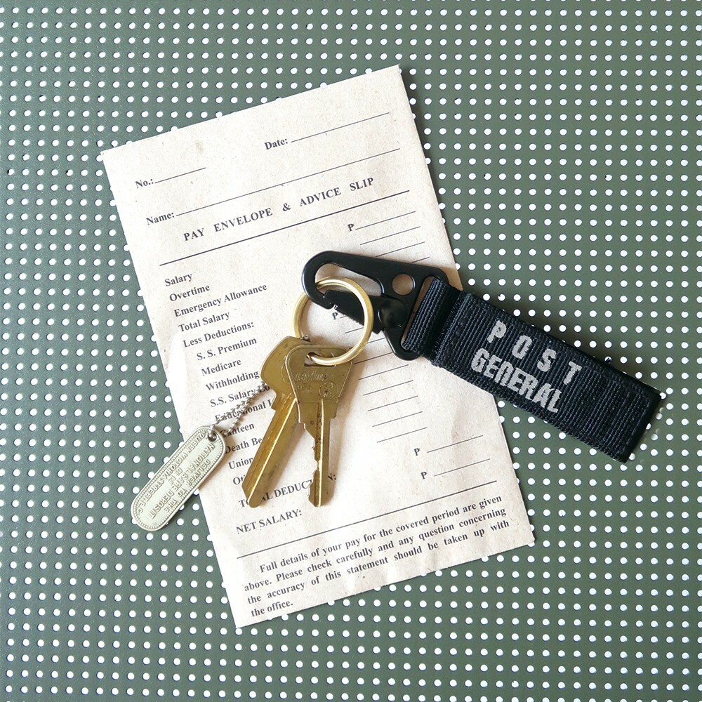 【產品介紹】可以掛在包包或是皮帶扣上的鑰匙圈,上面有POST GENERAL的刺繡,是男性會喜歡的設計。【產品規格】款式:土狼棕、狼棕色、玄黑色、橄欖綠尺寸:W2.5cm×D13.5cm重量:25g材質:聚酯纖維、鋼