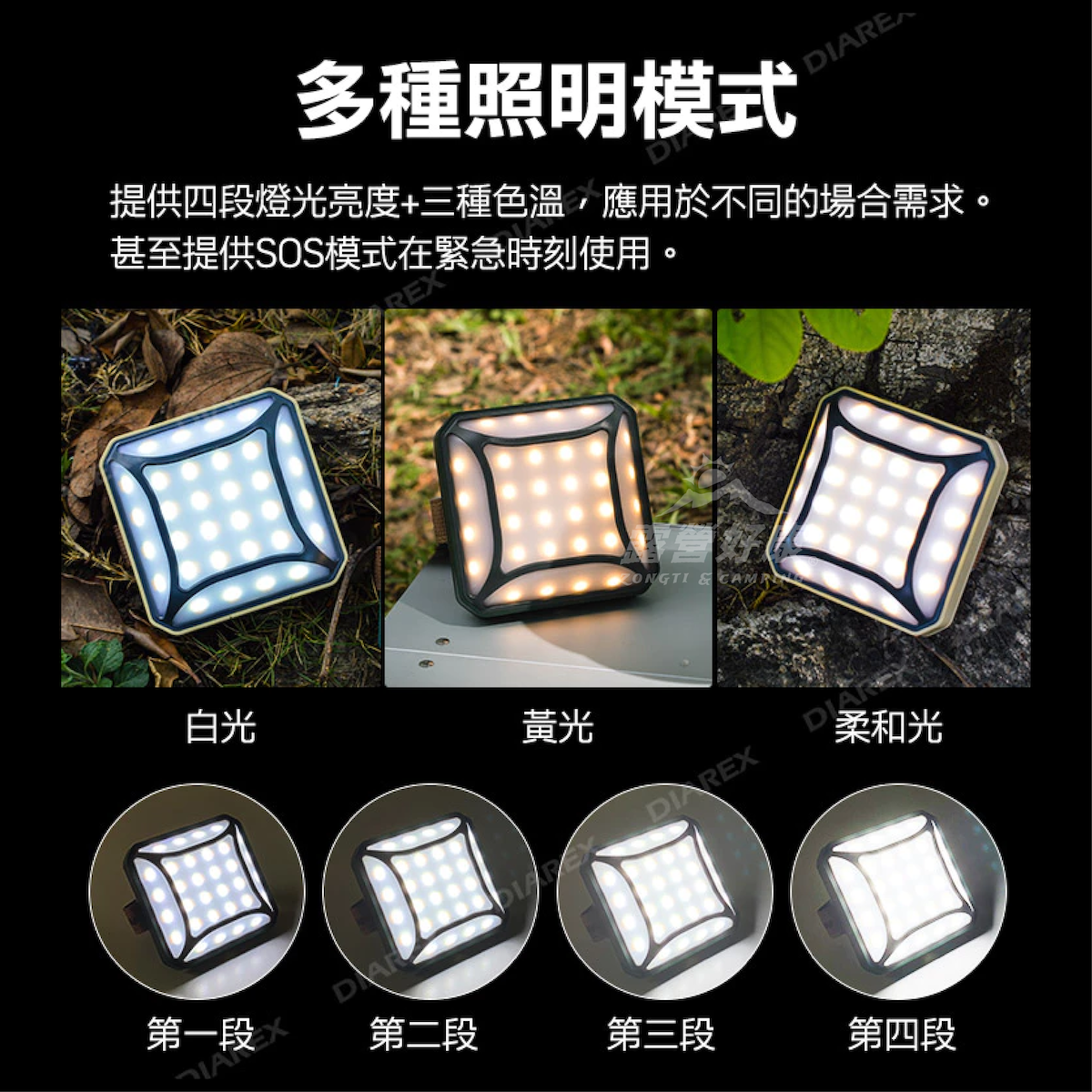 • 多種照明模式,提供四段燈光亮度+三種色溫、SOS模式