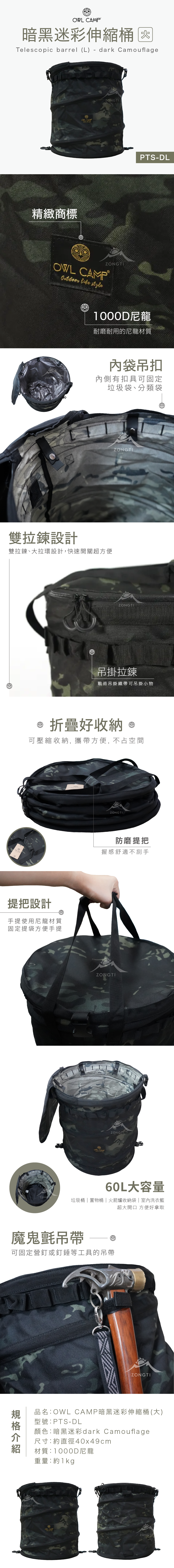 【OWL CAMP】 伸縮桶 (大) - 暗黑迷彩(煤油暖爐收納) Telescopic barrel (L) - dark Camouflage PTS-DL