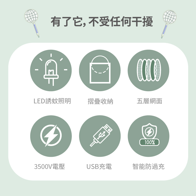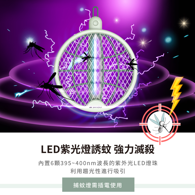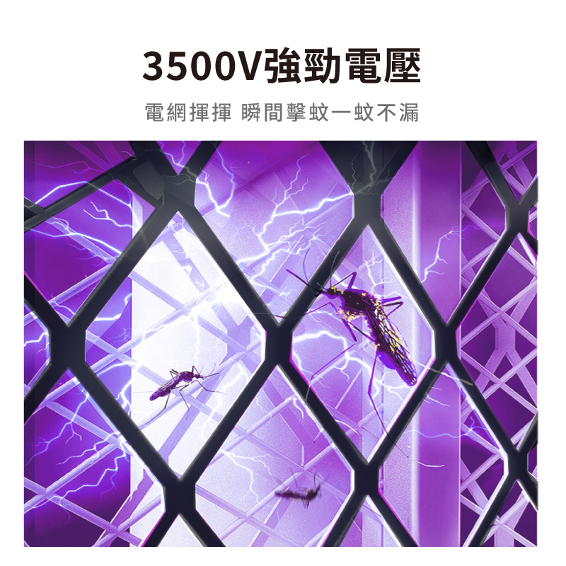 3500V瞬間電擊,強效滅蚊不漏抓!