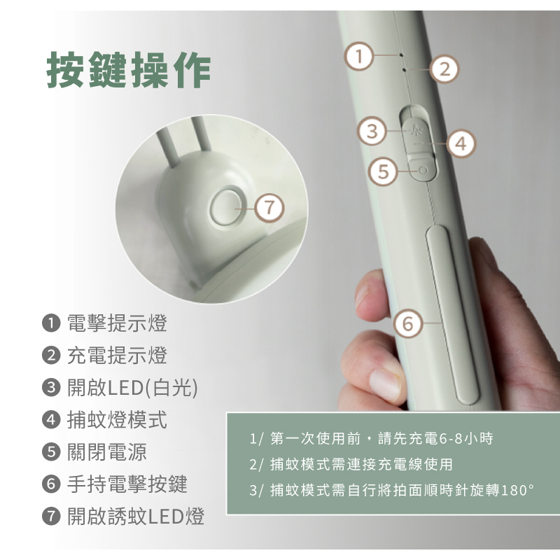 180度旋轉收折設計,蚊拍/蚊燈一秒變換