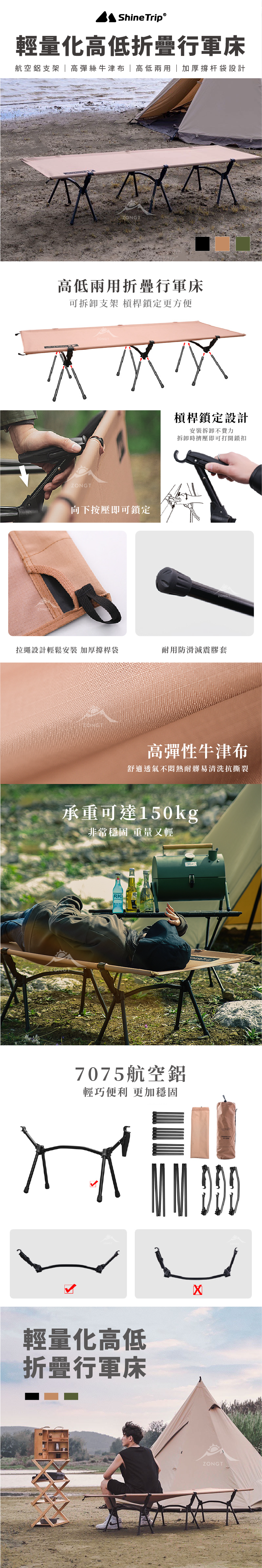 ✔高低兩用折疊行軍床,可拆卸支架,槓桿鎖定更方便