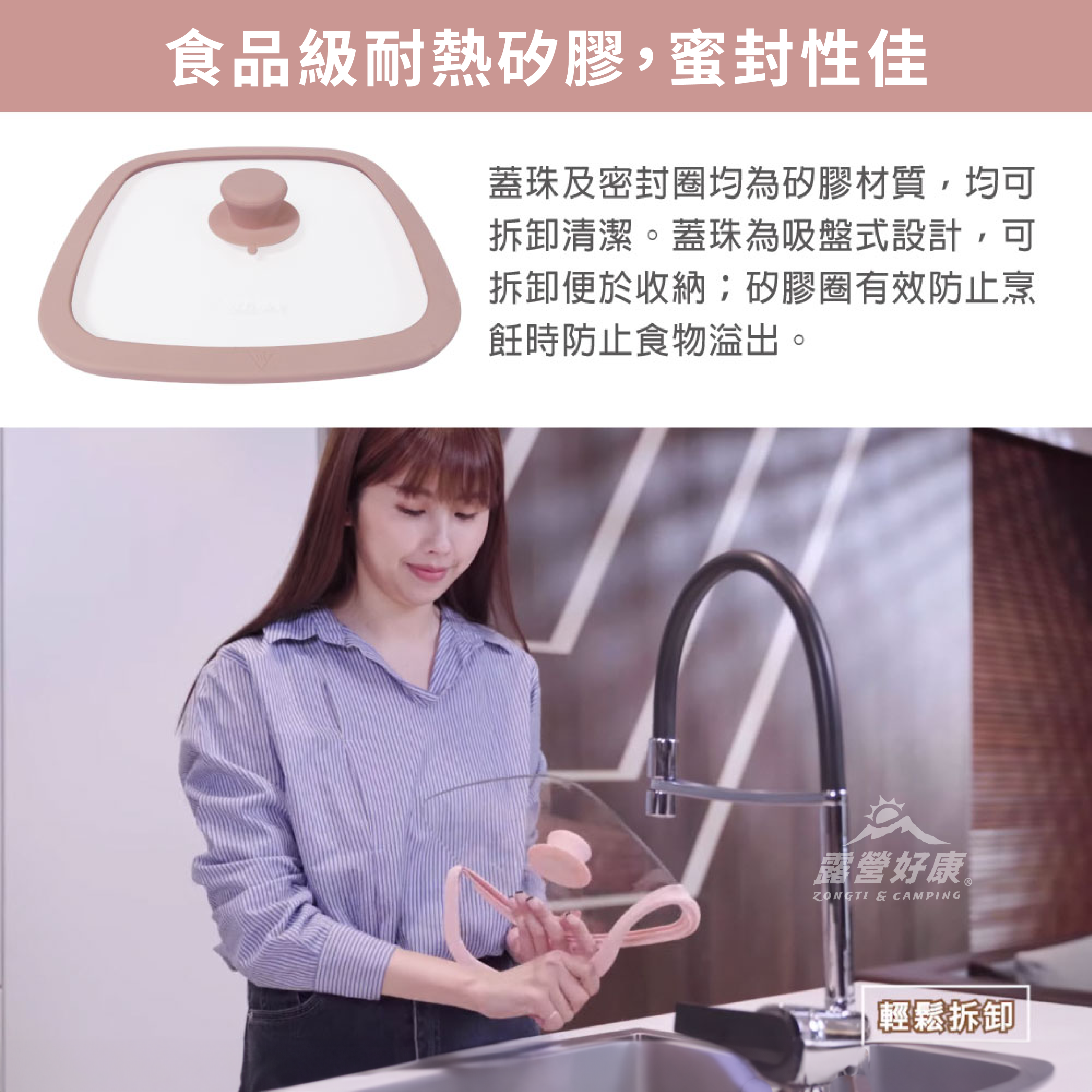 ❣ 強化玻璃蓋使用新型蓋珠吸盤式設計,矽膠邊框可輕鬆拆卸清洗,不殘留異味