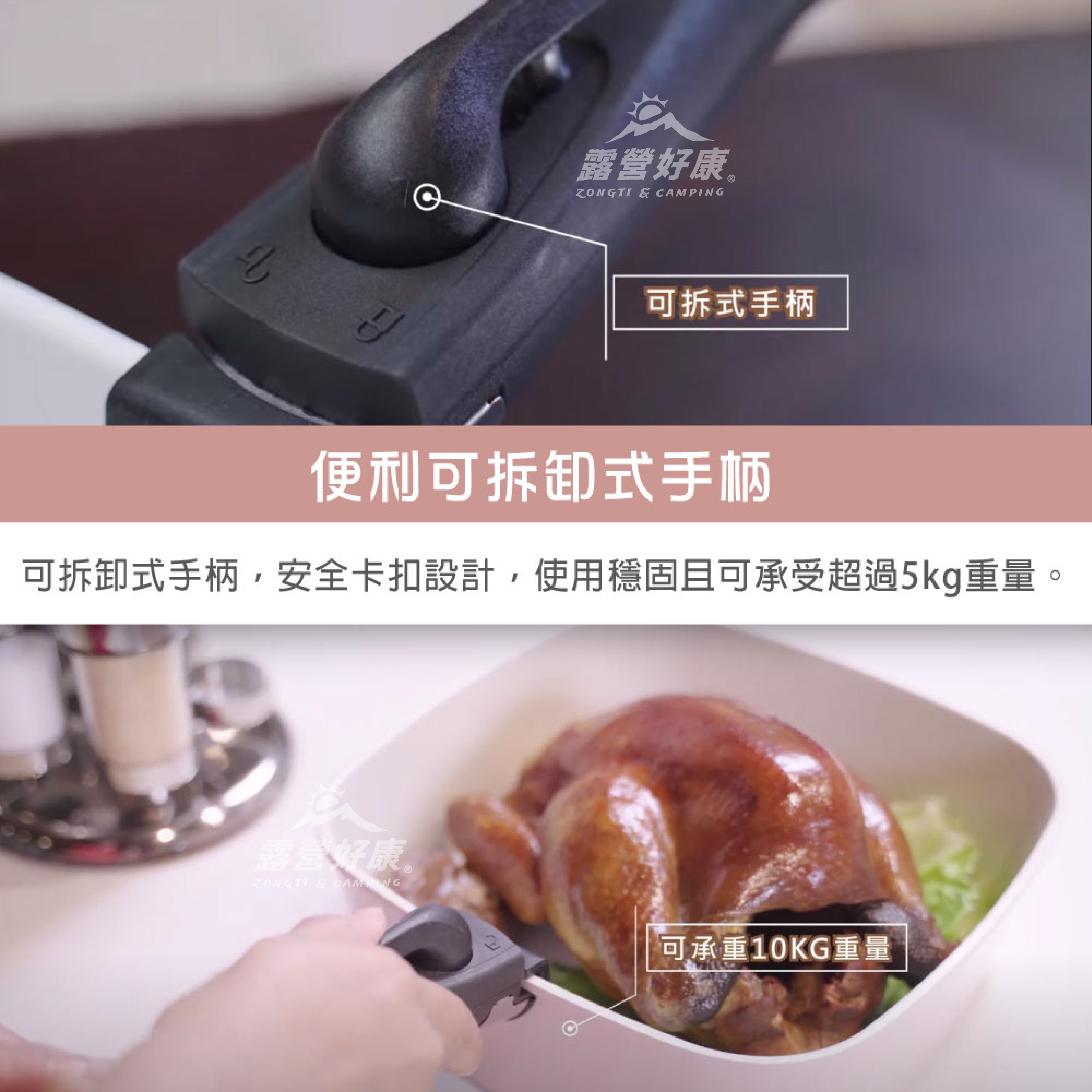 ❣ 可拆卸式手柄,安全卡扣設計,使用穩固且可承受超過5kg重量