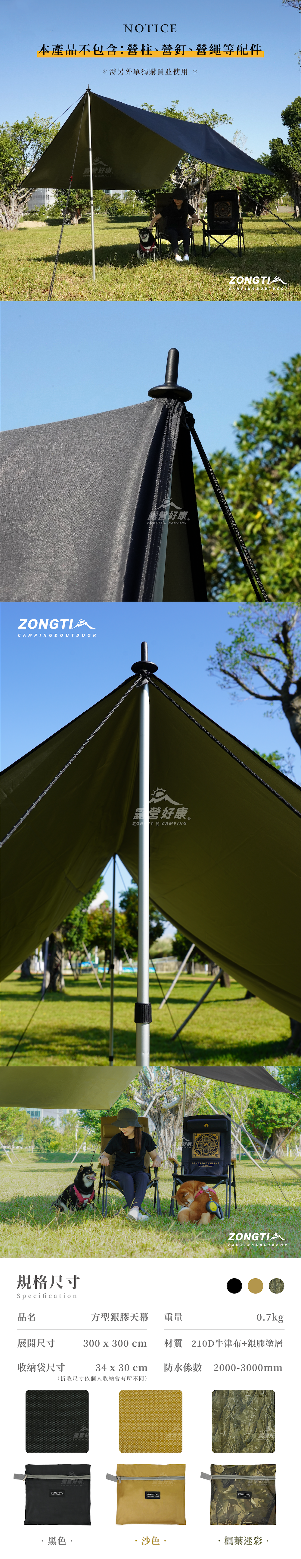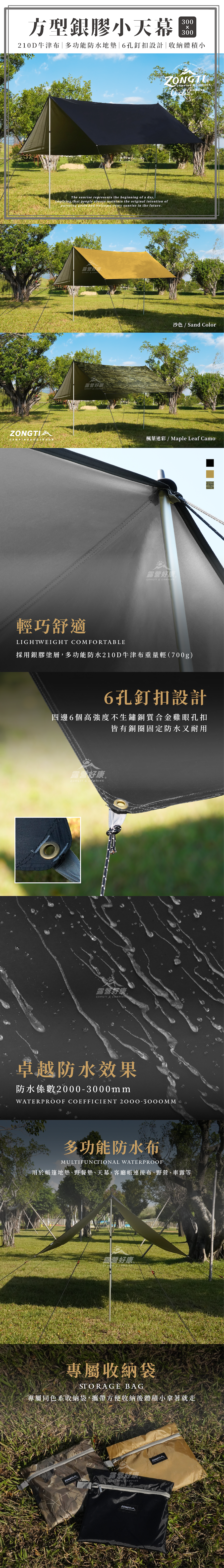 ▲ 多功能防水布:可遮陽、遮雨當天幕、野餐墊、車露、客廳帳連接布
