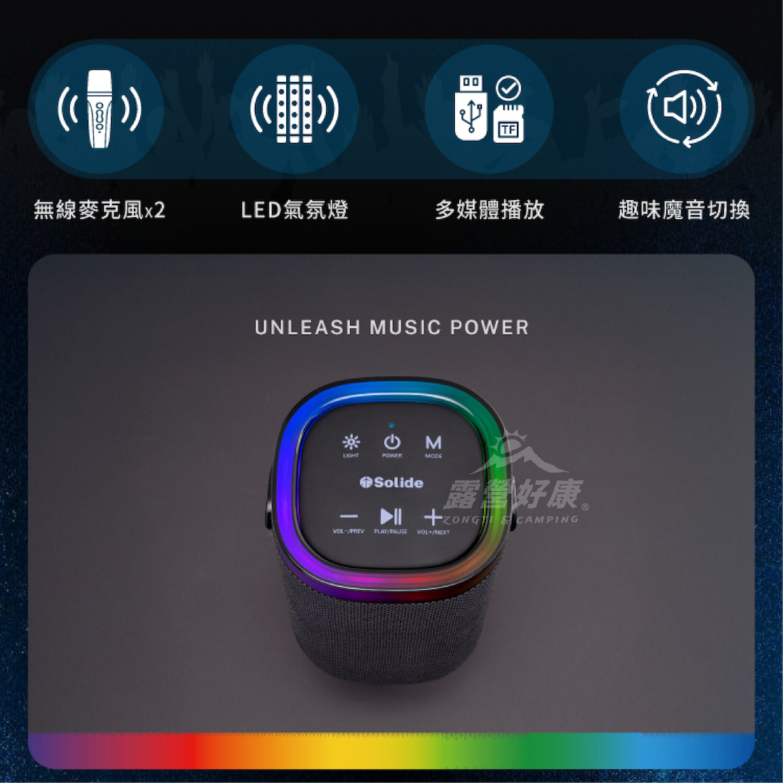 ✔多模式播放:支援MP3、TF卡、USB、AUX輸入及藍牙5.3