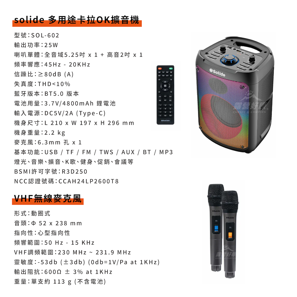 ✔附贈兩隻VHF無線麥克風