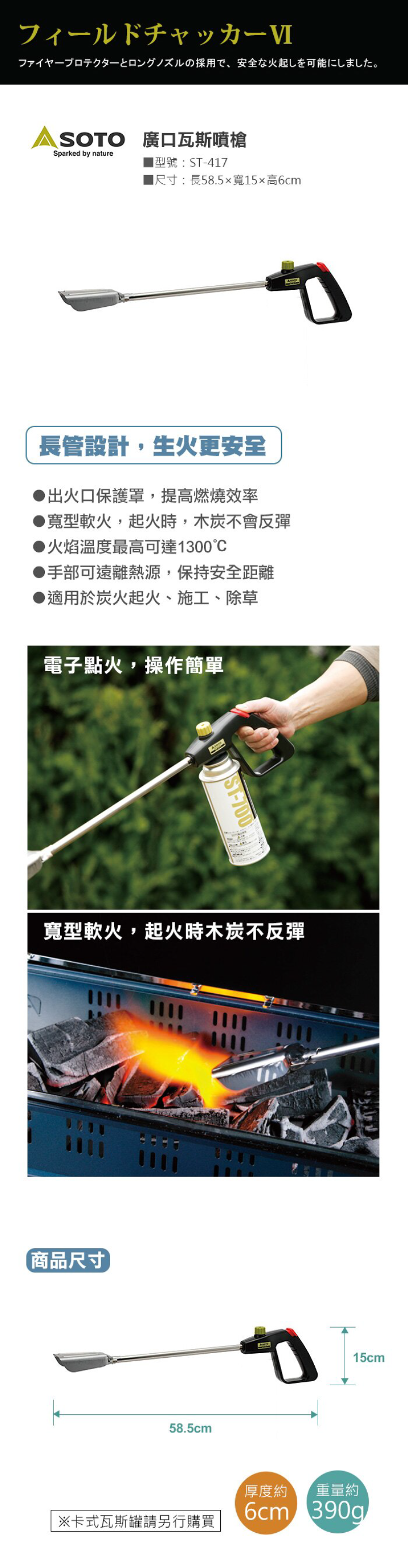 ●適用於炭火起火、施工、除草