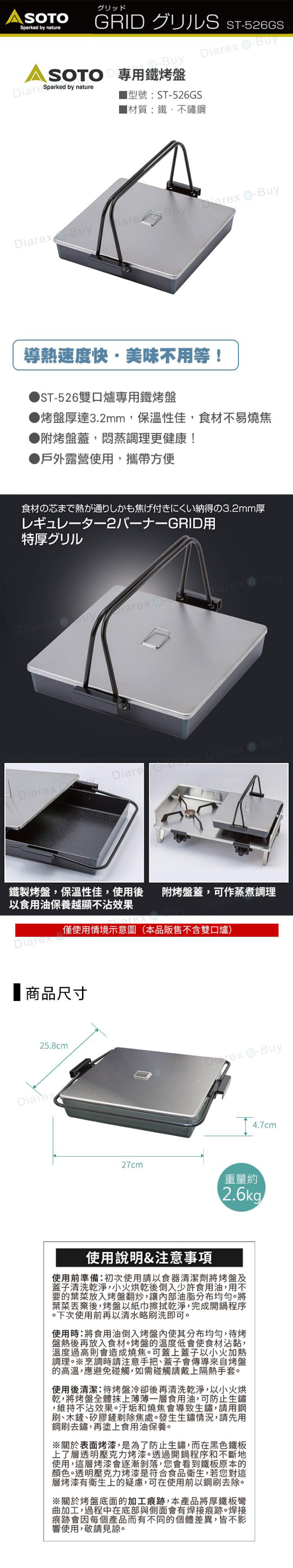 【品名】SOTO雙口爐專用鐵烤盤ST-526GS