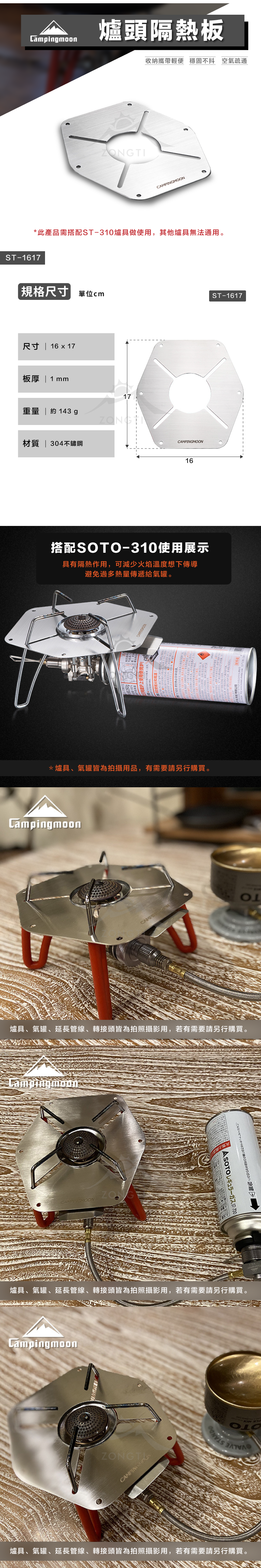✔一體式隔熱板小巧便攜,ST-310蜘蛛爐專用