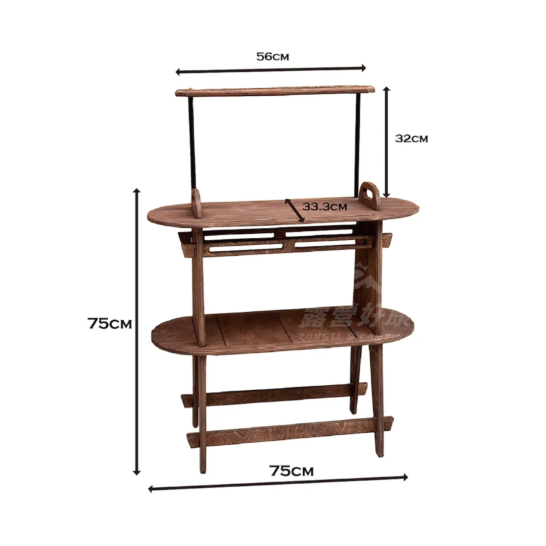 展開尺寸:長:75cm x 寬33.3cm x 高75cm(不含實木燈架層)