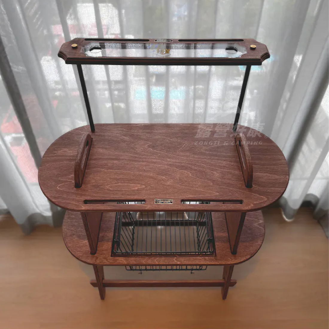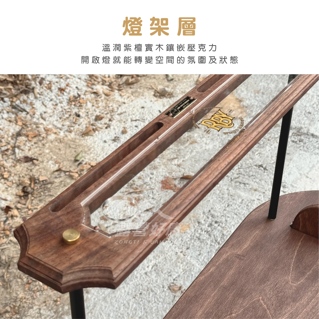 燈架層設計,溫潤紫檀實木中鑲嵌壓克力