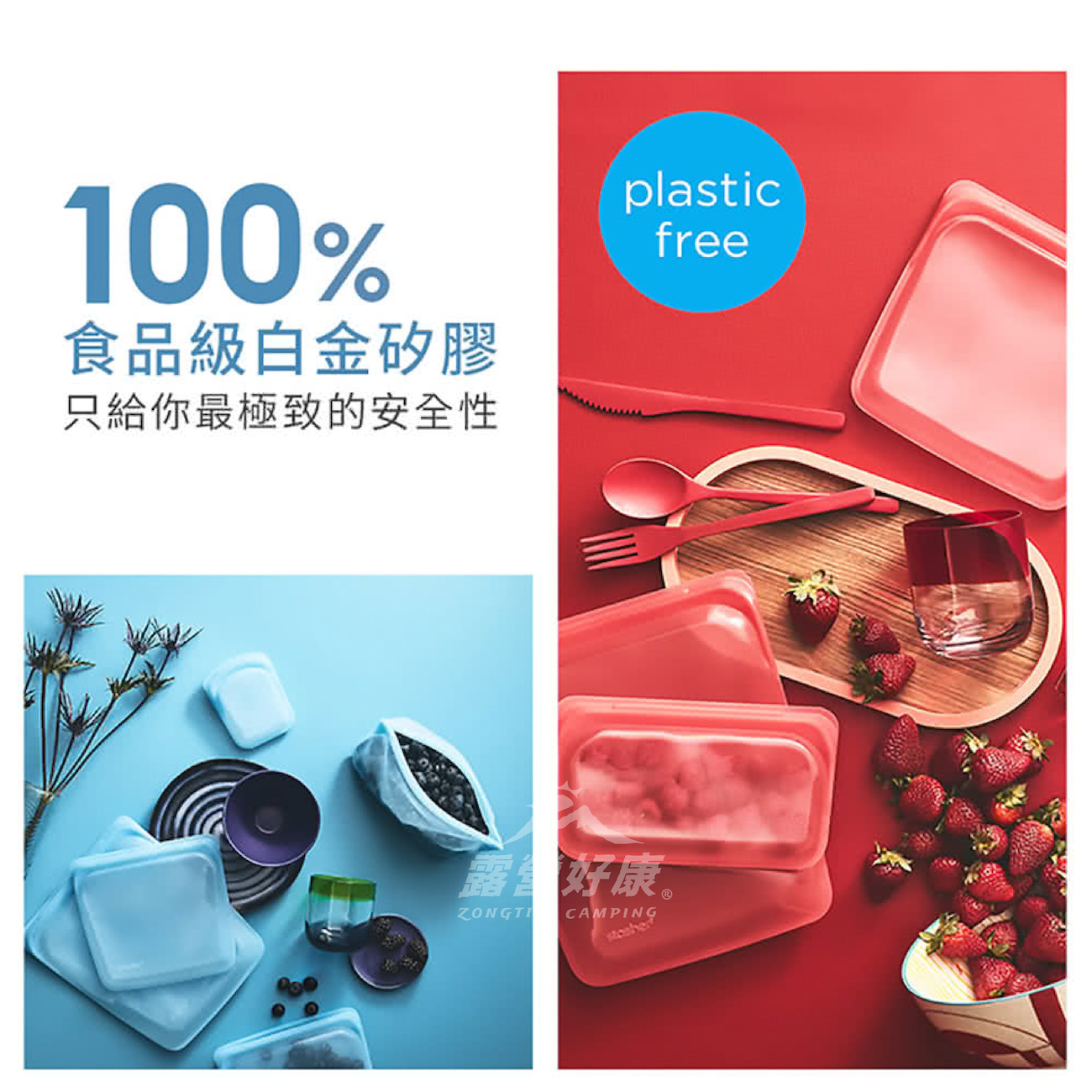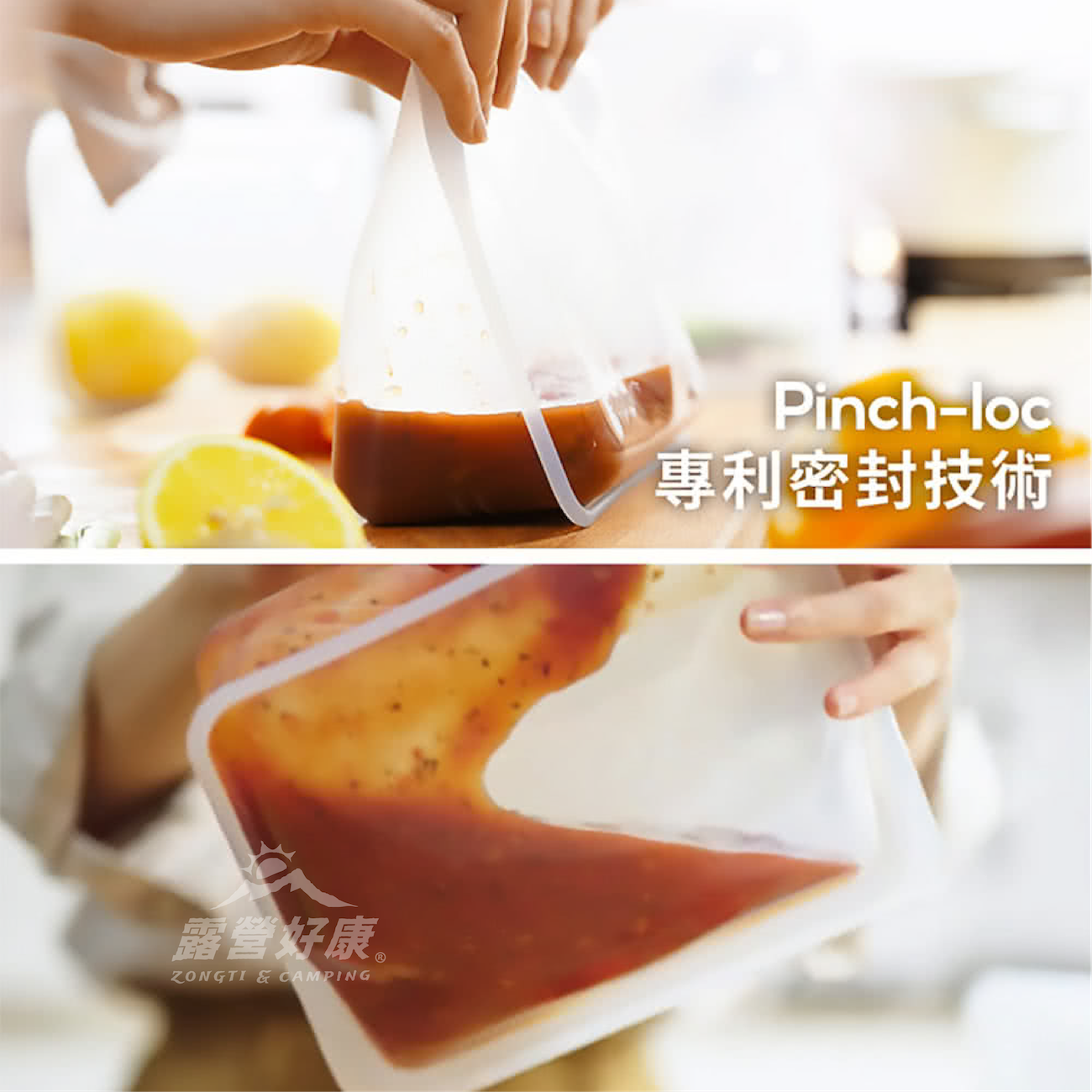 ✔按壓自密封:專利 Pinch-loc™ 封口設計,無塑料,輕鬆按壓即可封口