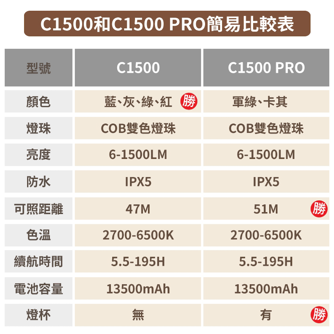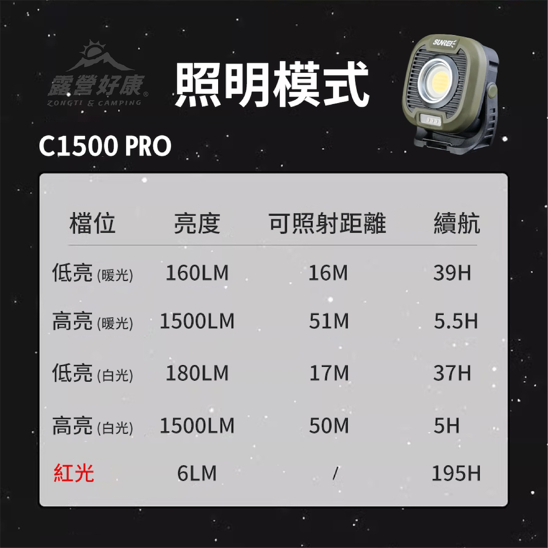 ✔最長使用時間50小時 ( 省電低亮度模式 )