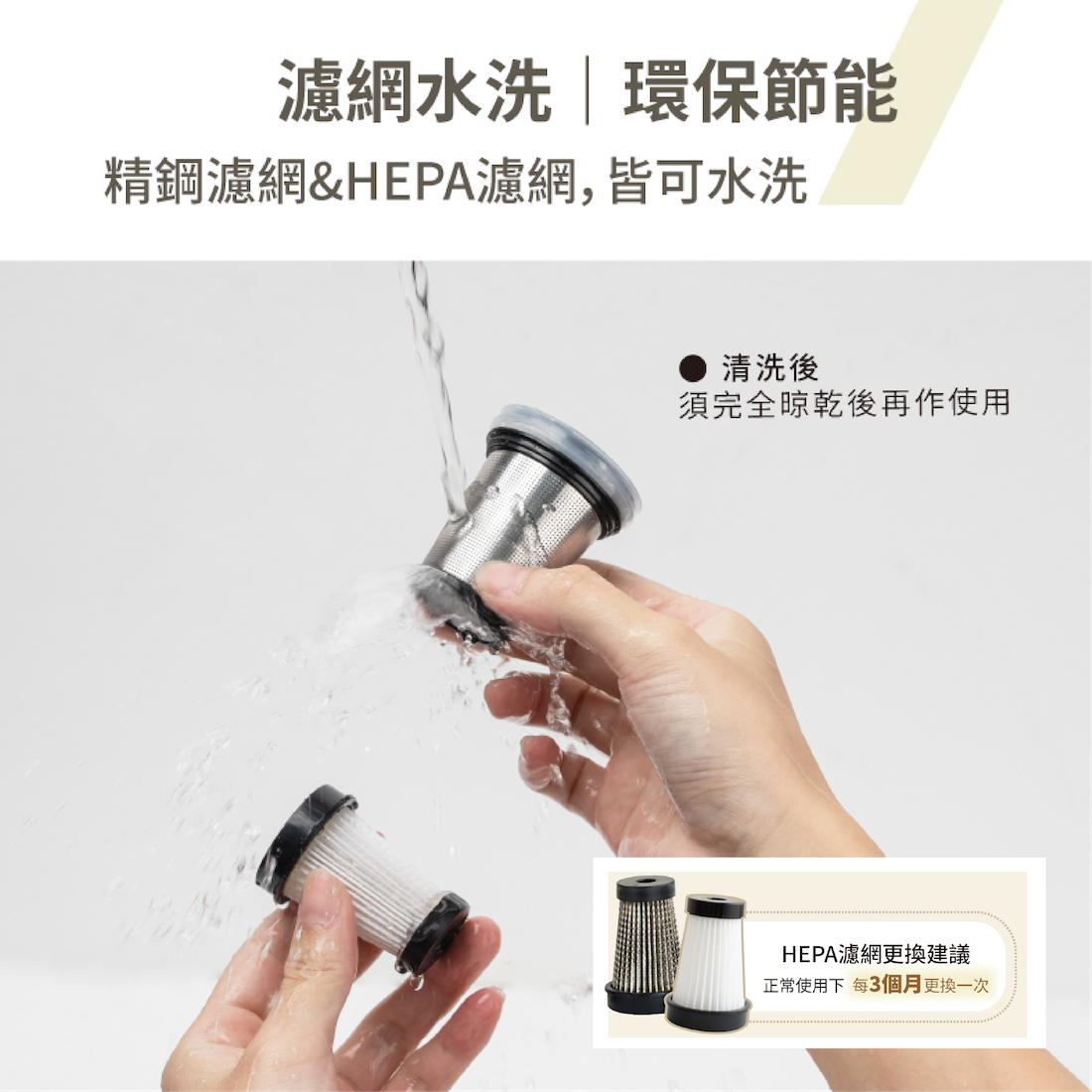 • 蜂巢式精鋼濾網+HEPA濾網,外濾網可水洗清潔