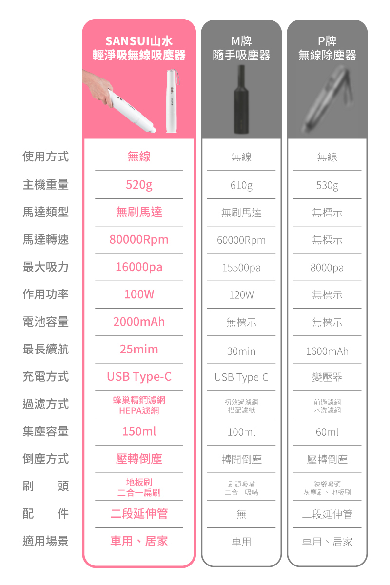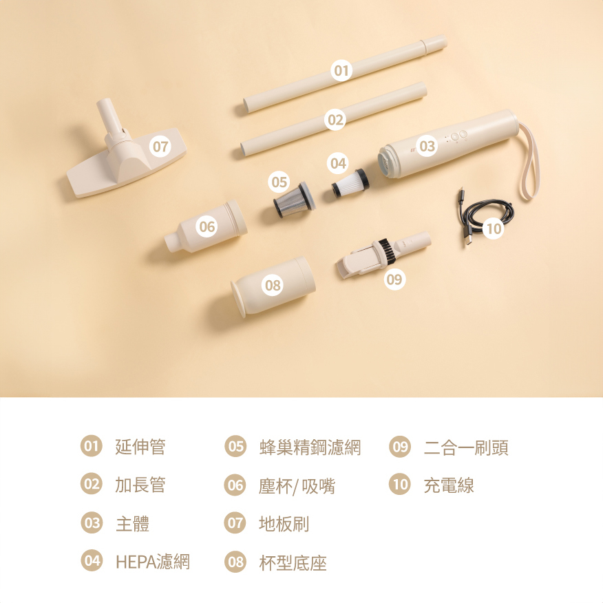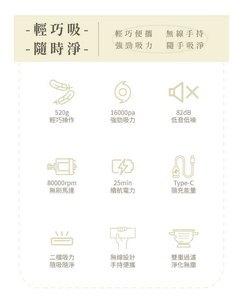 • 16kpa大吸力,灰塵/毛髮/碎屑都難不倒它