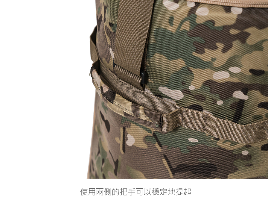 兩側手把提環與多功能織帶環設計