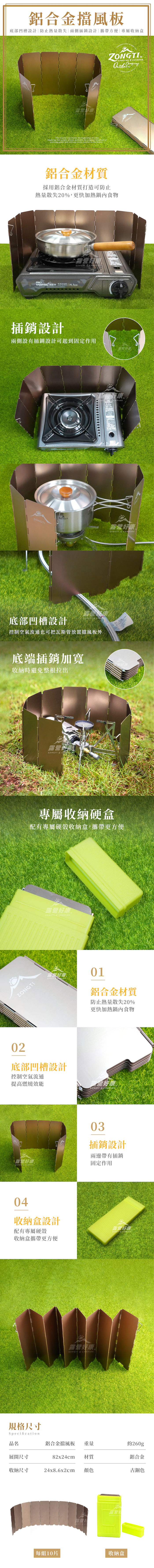 材質:耐用的鋁合金,經過陽極處理,確保持久的表面光潔和耐磨性。每一塊擋風板都有一個硬質塑膠盒,方便存放和攜帶。