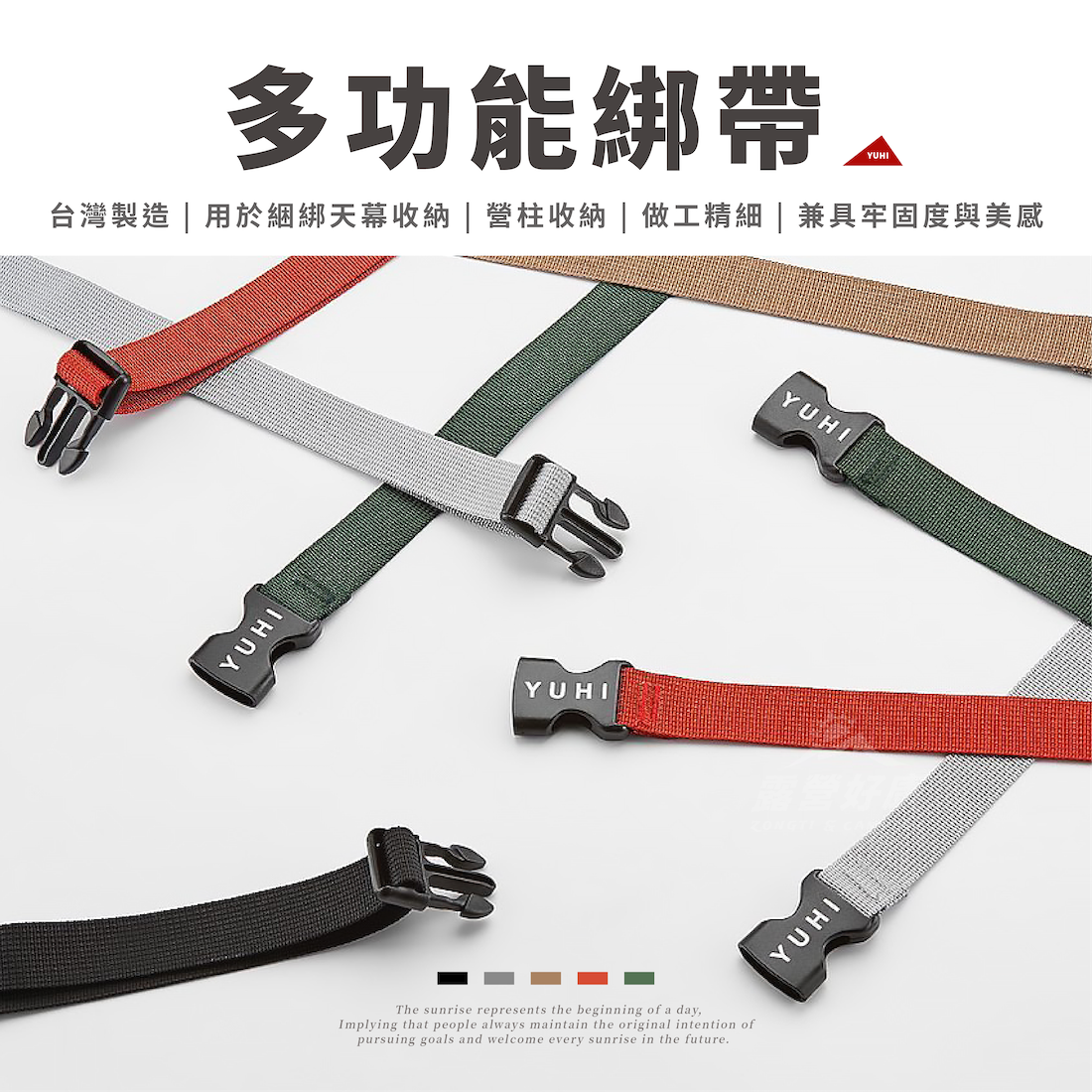 • 兩種尺寸,可用於綑綁天幕收納或營柱收納,也可以搭配掛物繩做掛物用