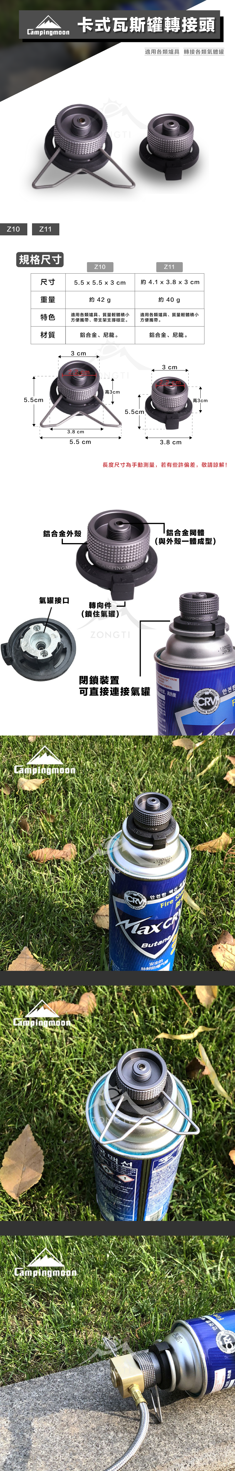【Campingmoon柯曼】卡式瓦斯罐轉接頭|高轉卡 Z10 Z11 BKZ10 BKZ11 CA12