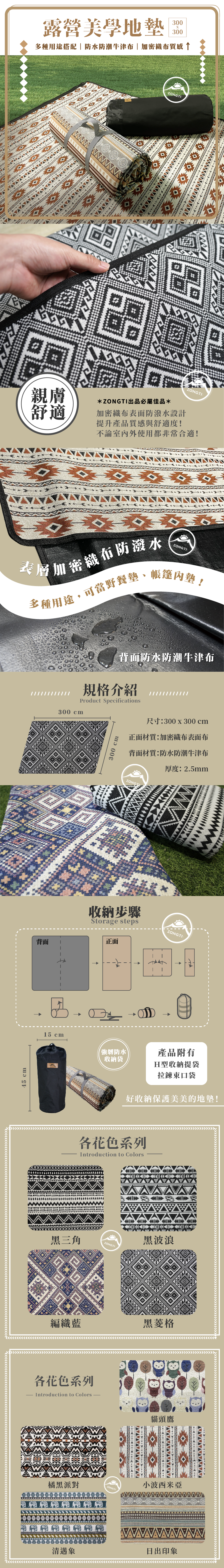 ZONGTI民族風編織地墊 超大300CMX300CM防潮地墊/ 野餐墊