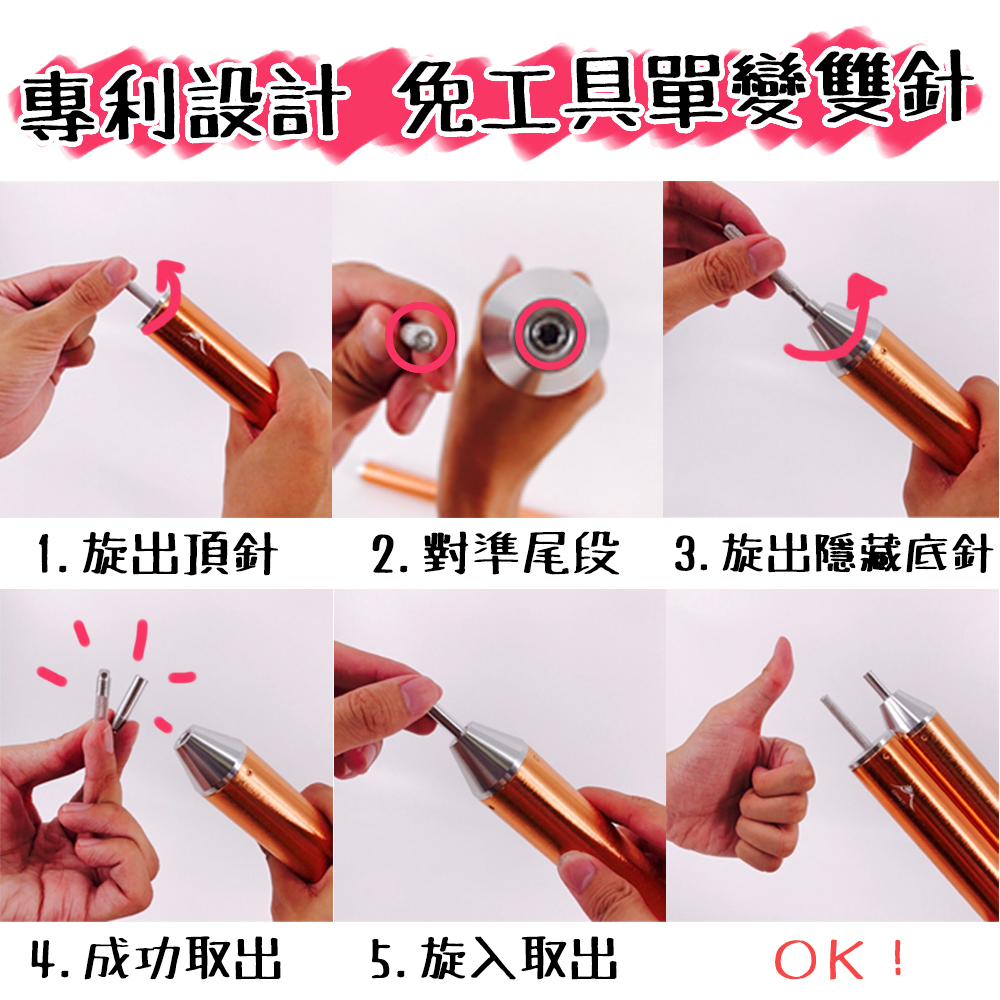 *『專利設計』免攜帶任何工具,就能單針變雙針!