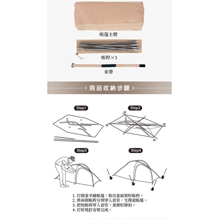 配件:帳桿x3、地釘x6