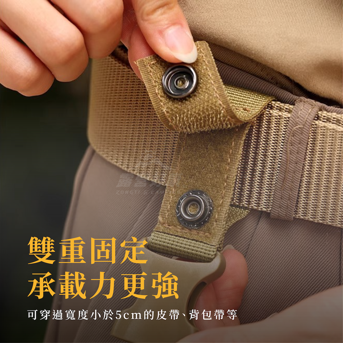 ✔雙重固定,承載力更強,可穿過寬度小於5cm的皮帶、背包帶等