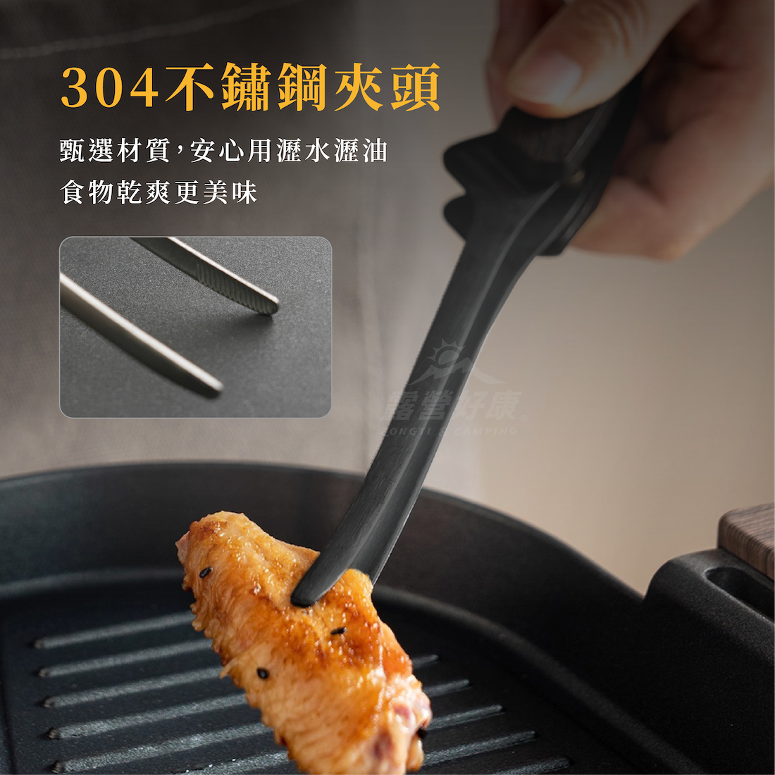 ✔304不鏽鋼夾頭,甄選材質,安心用瀝水瀝油,食物乾爽更美味