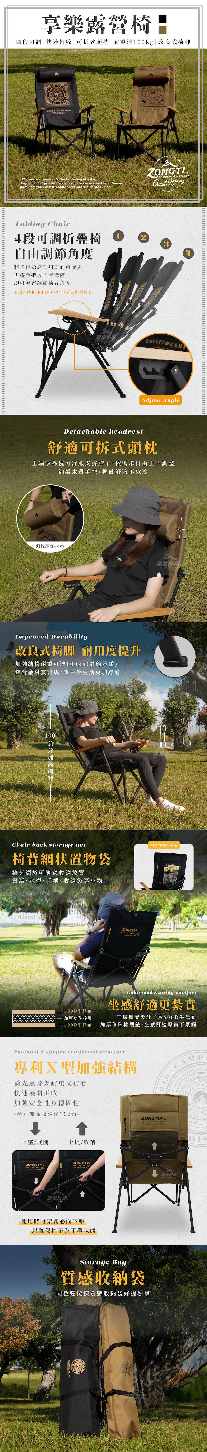 品名:ZONGTI 享樂露營椅 四段大川椅