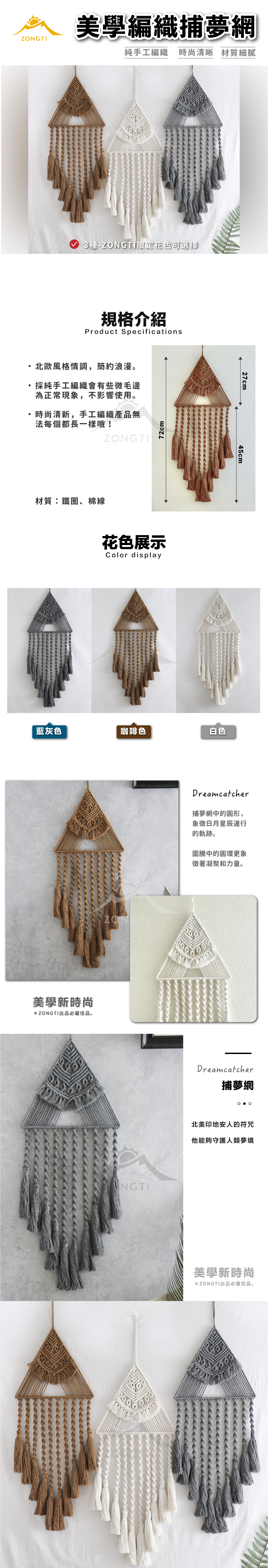 美學編織捕夢網 ZONGTI【露營好康】露營美學 露營佈置 流蘇 掛毯 三角旗