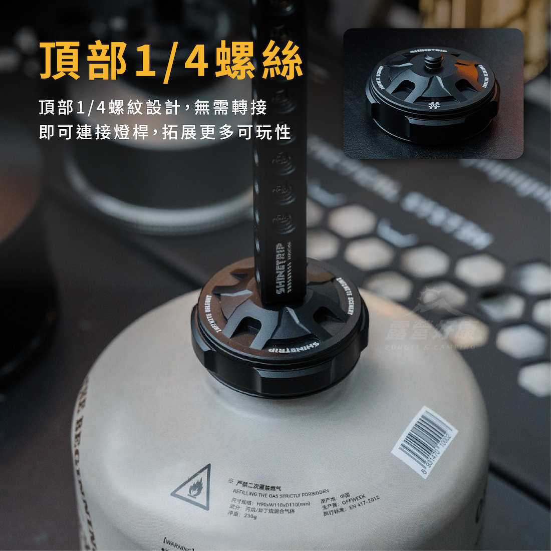 ✔頂部1/4螺絲,無需轉接即可連接燈桿、相機或手機支架