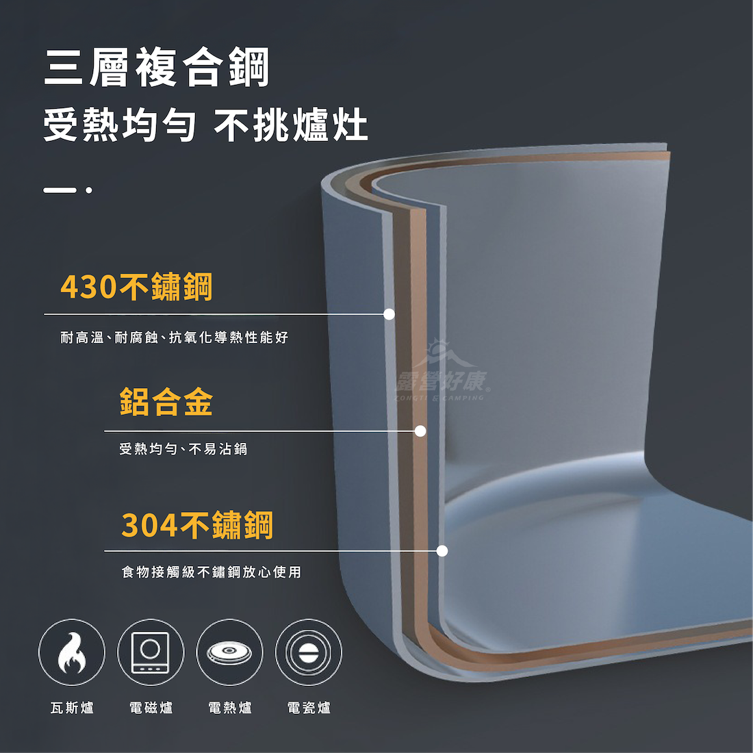 ✔三層複合鋼,受熱均勻,不挑爐灶